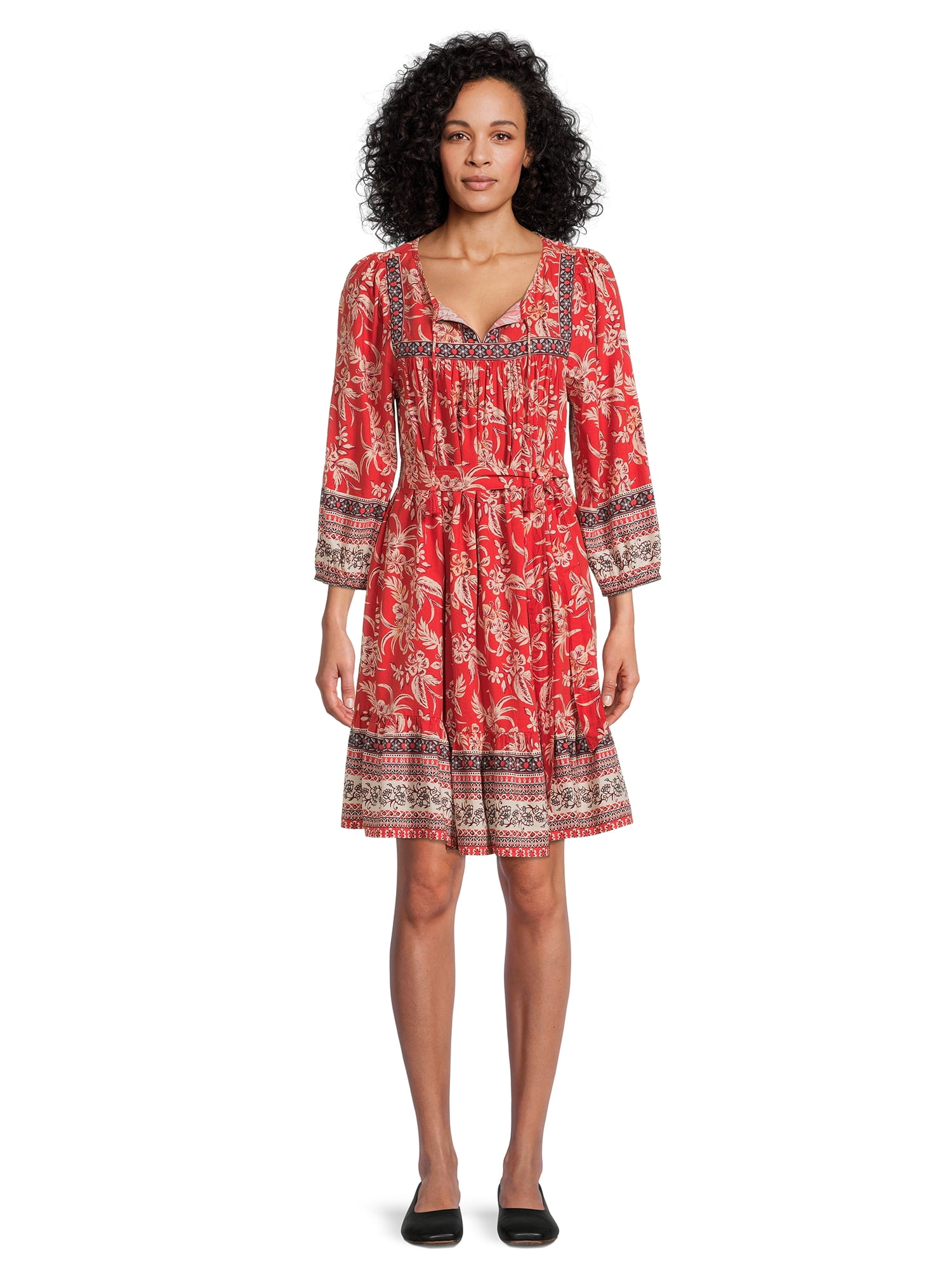 Beachlunchlounge Women S Print Tie Waist Dress Walmart Com