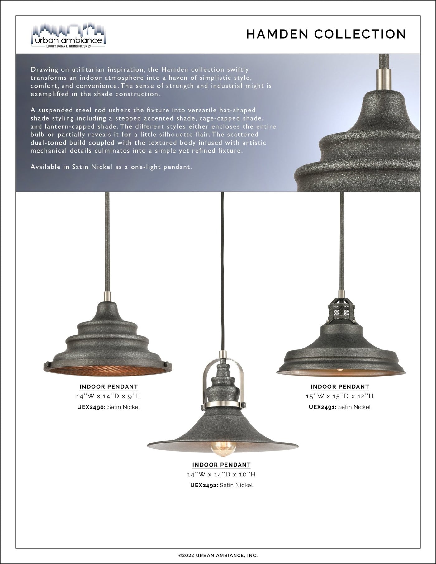 Uex2492 Utilitarian Pendant 10 H X 14 W Satin Nickel Finish Hamden Urban Ambiance
